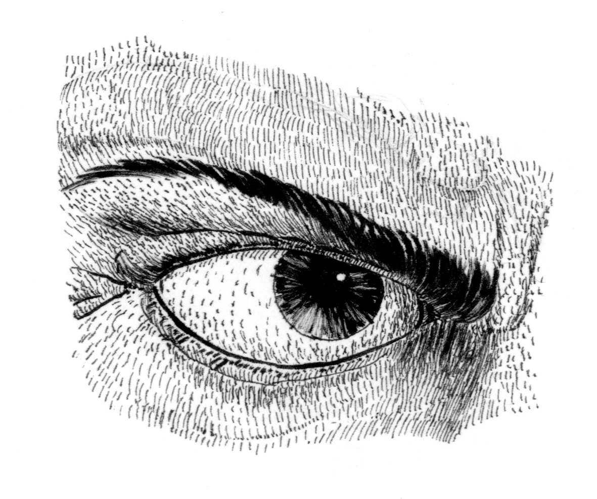 Close-up sketch of a human eye using a combination of a rough brush and a fine tip felt marker.